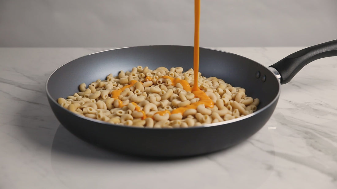 The cheese sauce combines real cheddar cheese, whey powder, and a touch of rice protein concentrate, creating a creamy, flavorful meal made with Non-GMO ingredients.